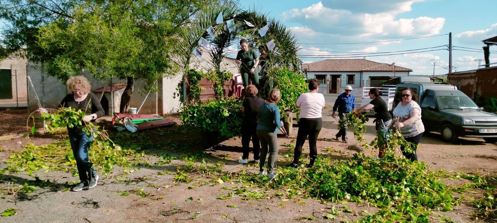 Los quintos del año, junto con los vecinos que deseen participar, se encargan de reunir y llevar la leña hasta la explanada situada frente al Parque de San Isidro.
