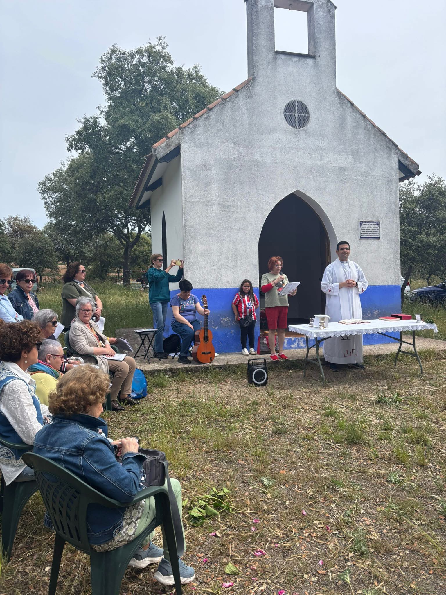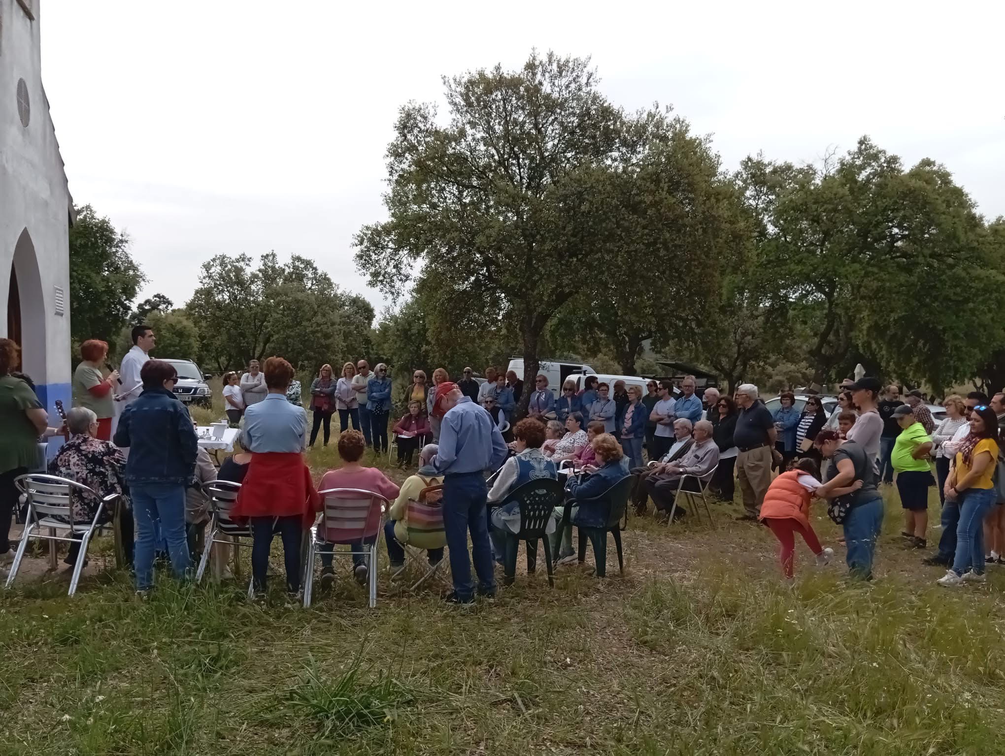 Se celebra una Eucaristía en la ermita, y tras ella, cada grupo o familia se reúne bajo su encina (hato o rancho), donde esperan las viandas preparadas la víspera.
